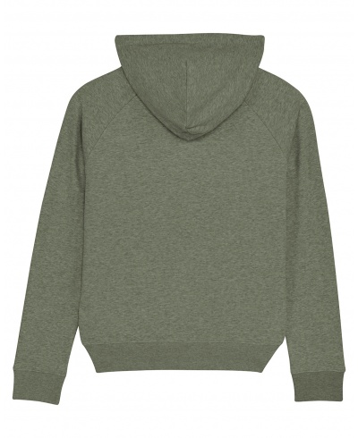 Gramáž: 350 g/m², Materiál: 85% česaná a předepraná organická bavlna, 15% recyklovaný polyester; Raglánové rukávy, dvojitá kapuce, v kapuci kulaté šňůrky ve stejné barvě jako mikina, výztužná páska za krkem, jednoduché prošití okolo výstřihu, dvojité prošití v průramcích, na manžetách a spodním lemu, klokaní kapsa s dvojitým prošitím, 1x1 žebrování na manžetách a spodním lemu