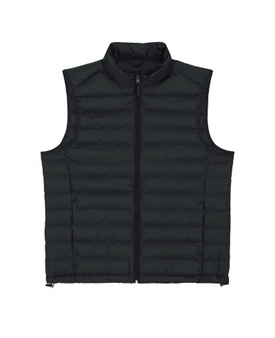 Materiál: 100% recyklovaný polyester, DWR bez fluoru; Gramáž: 75g/m²; Přiléhavý střih, bez rukávů, vysoký límec, nylonový zip uprostřed vpředu, kapsy na zip, zavazování elastickou páskou v průramku, plně prošívaná, boční panely pro lepší tvar, vnitřní vázané švy, spodní lem s nastavitelnou plastovou zarážkou a elastickou šňůrkou; Certifikáty: Global Recycled Standard (GRS), Fair Wair, STANDARD 100 by OEKO-TEX®, Peta - Approved VEGAN