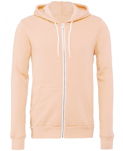 Neuvěřitelně měkká unisex mikina s kapucí na zip, zateplená z plyšové směsi poly-bavlny, se rychle stane nezbytností. Má volný střih, kapuci s bílými šňůrkami, zapínání na zip a žebrované manžety.