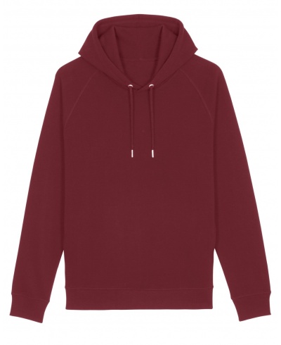 Raglánové rukávy, dvouvrstvá kapuce, kulaté stahovací šňůry v barvě mikiny s kovovým zakončením, kovová očka, zpevňující páska na zadní straně za krkem, šikmé boční švy s postranními kapsami, 1x1 žebrovaný lem na rukávech a ve spodní části mikiny, švy prošité plochým stehem