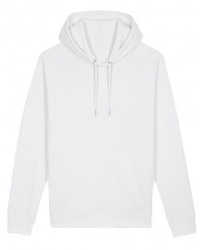 Raglánové rukávy, dvouvrstvá kapuce, kulaté stahovací šňůry v barvě mikiny s kovovým zakončením, kovová očka, zpevňující páska na zadní straně za krkem, šikmé boční švy s postranními kapsami, 1x1 žebrovaný lem na rukávech a ve spodní části mikiny, švy prošité plochým stehem